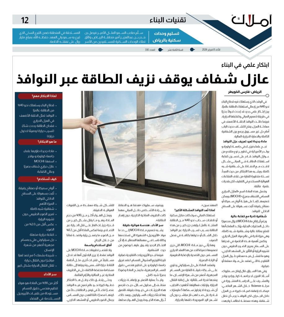 تستهلك المباني، سواء كانت منازل سكنية أو ناطحات سحاب، نحو 40% من الطاقة المنتجة عالميًا، ويُهدر جزء كبير من هذه الطاقة بسبب تسرب الحرارة عبر النوافذ خلال الشتاء أو دخولها بكثافة في فصل الصيف. وهنا يأتي دور مادة  MOCHI، التي جرى تصميمها خصيصًا للحد من هذا الفقد الحراري المستمر، دون التضحية بالإضاءة الطبيعية أو الراحة البصرية.