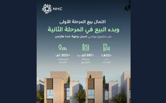 أعلنت شركة “NHC” عن اكتمال المرحلة الأولى من مشروع “رواسي” في وجهة جدة هايتس، وبدء البيع في المرحلة الثانية.