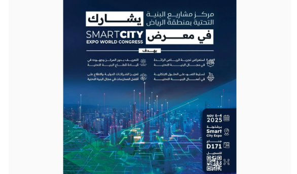 يشارك مركز مشاريع البنية التحتية بمنطقة الرياض في معرض المدن الذكية (Smart City Expo 2025) المقام في مدينة برشلونة الإسبانية، خلال الفترة من 4 إلى 6 نوفمبر، الذي يُعد من أبرز الفعاليات العالمية المتخصصة في استعراض أحدث الابتكارات والتقنيات في مجالات البنية التحتية وتطوير المدن الذكية والتحول الرقمي، بمشاركة عدد من الجهات الوطنية وأكثر من (1150) جهة تمثل (135) دولة و(850) مدينة حول العالم، وبحضور يتوقع أن يتجاوز (25,500) زائر.