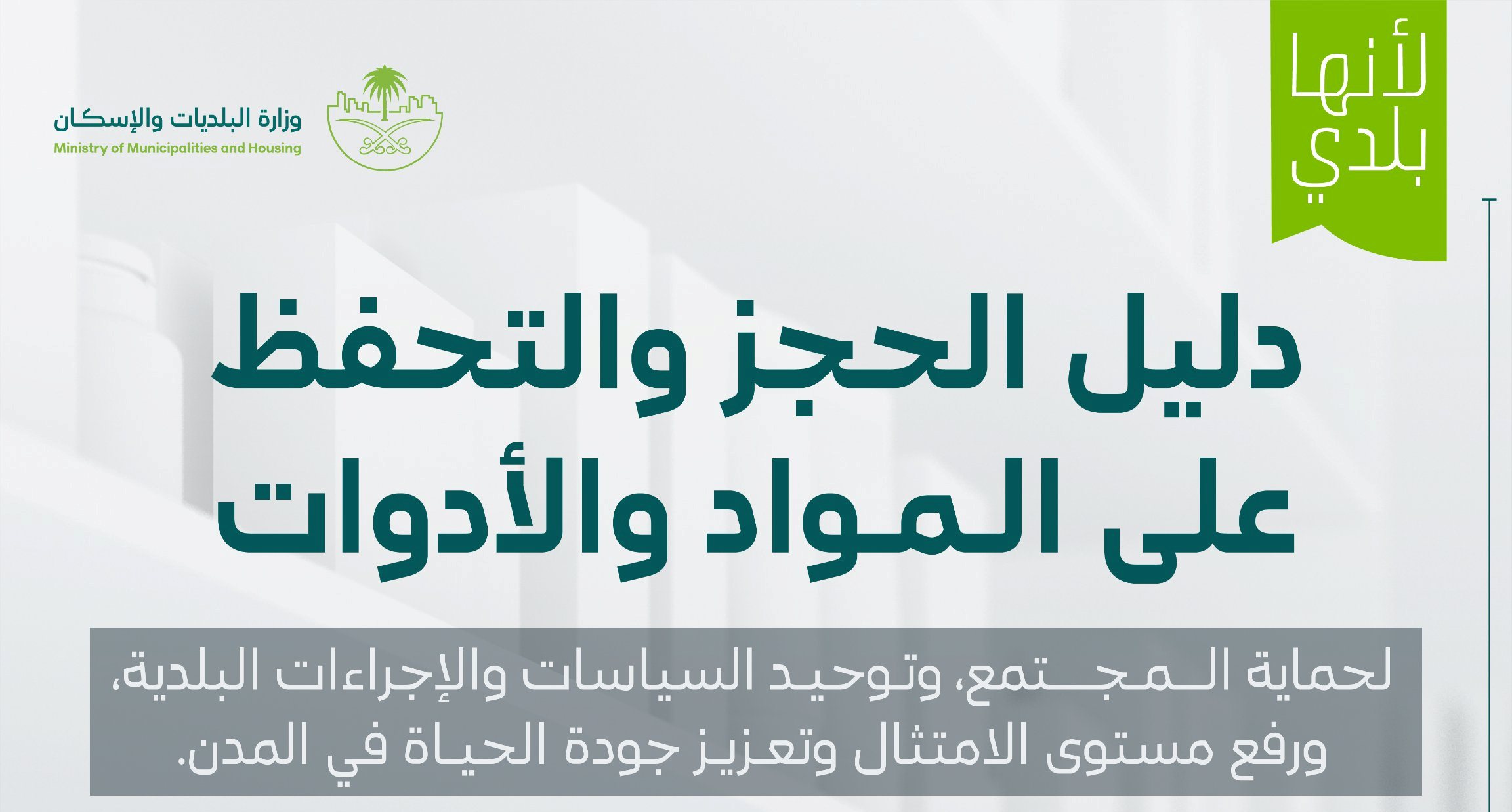 اعتمدت وزارة البلديات والإسكان دليل الحجز والتحفظ على المواد والأدوات، في خطوة تنظيمية تهدف إلى توحيد السياسات والإجراءات البلدية، ورفع مستوى الامتثال بالأنظمة واللوائح، بما يحافظ على السلامة والصحة العامة، ويعزز جودة الحياة في المدن.