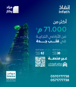 ويعتبر المزاد فرصة جاذبة للراغبين عن الفرص الاستثمارية الواعدة، كما ترحب شركة ديوان العقارية بجميع الاستفسارات من خلال التواصل على 0571777738 – 0570777738.