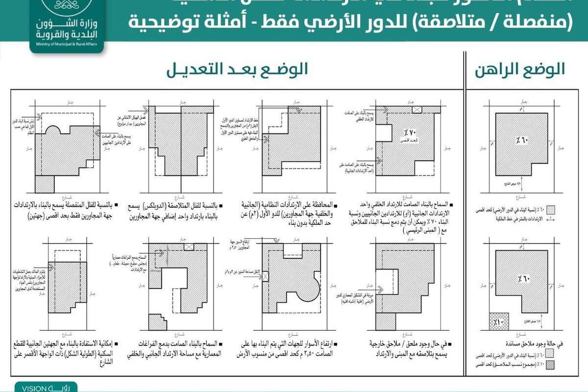 تطوير أنظمة البناء بالاستفادة من الأرض “الشؤون البلدية والقروية” تعلن السماح بالبناء بالارتدادات جهة المجاورين وتلاصق الملحق الخارجي بالمبنى