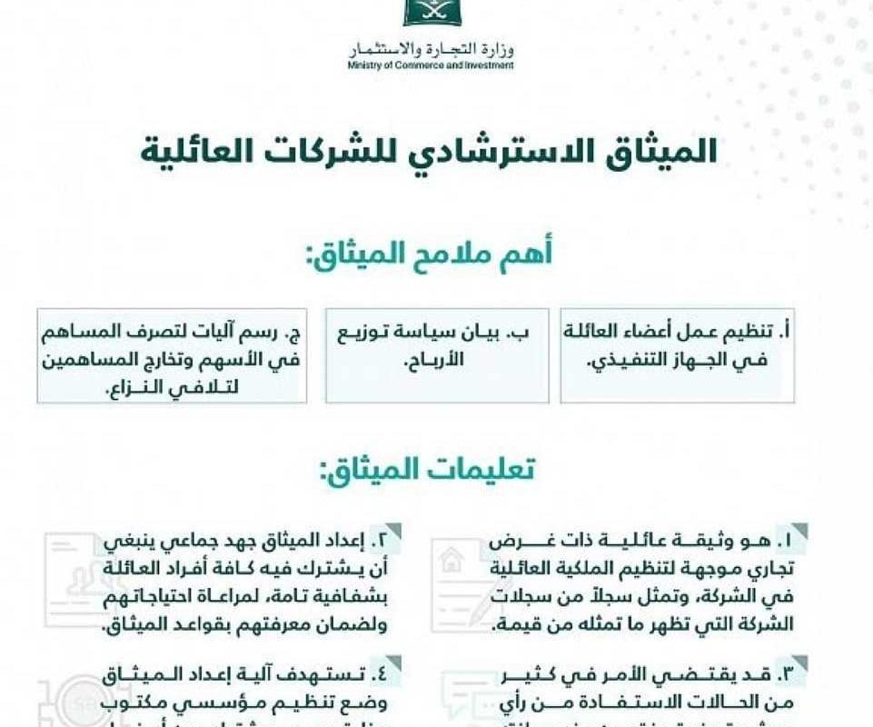 وزارة التجارة تصدر الميثاق الاسترشادي للشركات العائلية لتنظيم العلاقات التجارية بين أفراد الأسرة