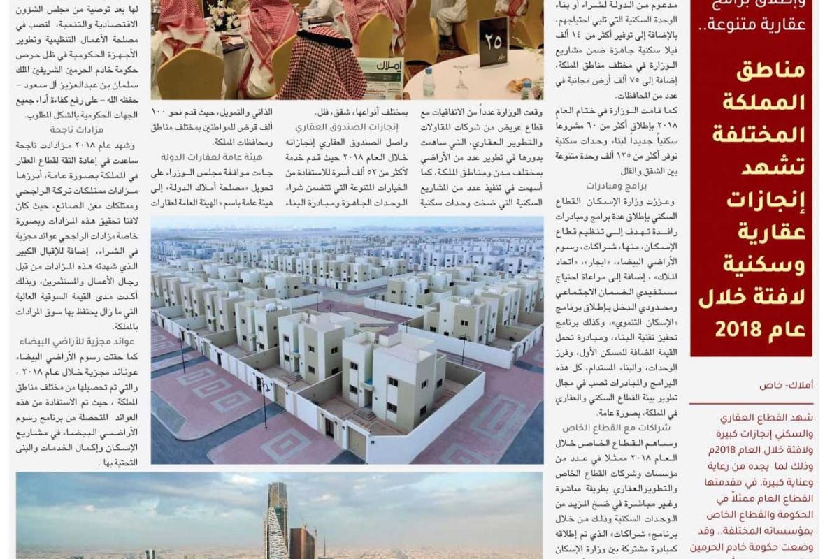 شهد ضخ آلاف الوحدات السكنية وإطلاق برامج عقارية متنوعة.. مناطق المملكة المختلفة تشهد إنجازات عقارية وسكنية لافتة خلال عام 2018