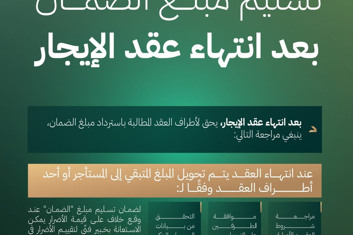 إنفوجراف| خطوات استرداد مبلغ الضمان بعد انتهاء عقد الإيجار