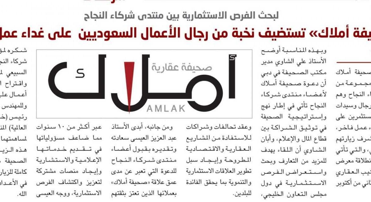 لبحث الفرص الاستثمارية بين منتدى شركاء النجاح.. «صحيفة أملاك» تستضيف نخبة من رجال الأعمال السعوديين على غداء عمل بدبي