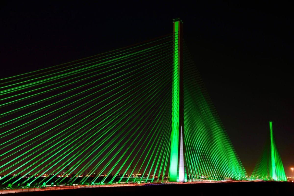 احتفالًا باليوم الوطني “٩١” … “النقل” تضيء الجسر المعلق في مدينة الرياض باللون الأخضر