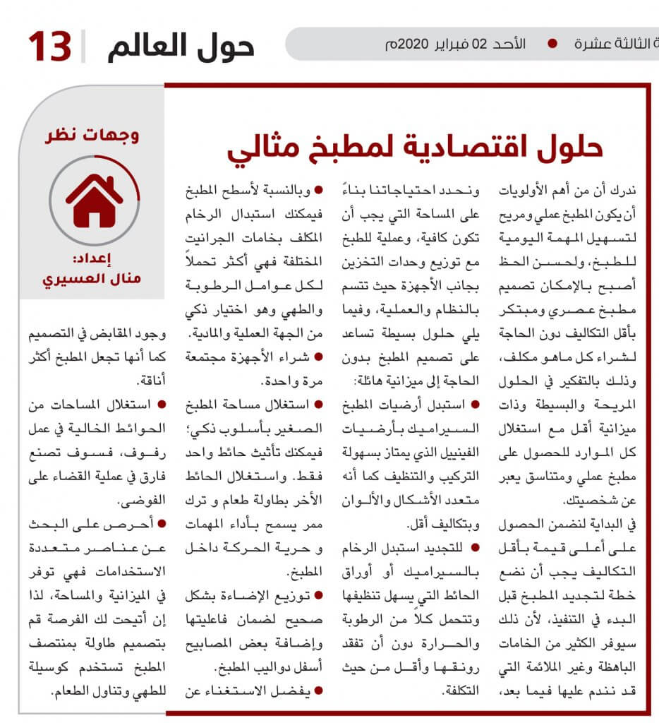 وبالنسبة لأسطح المطبخ فيمكنك استبدال الرخام المكلف بخامات الجرانيت المختلفة فهي أكثر تحملاً لكل عوامل الرطوبة والطهي وهو اختيار ذكي من الجهة العملية والمادية.