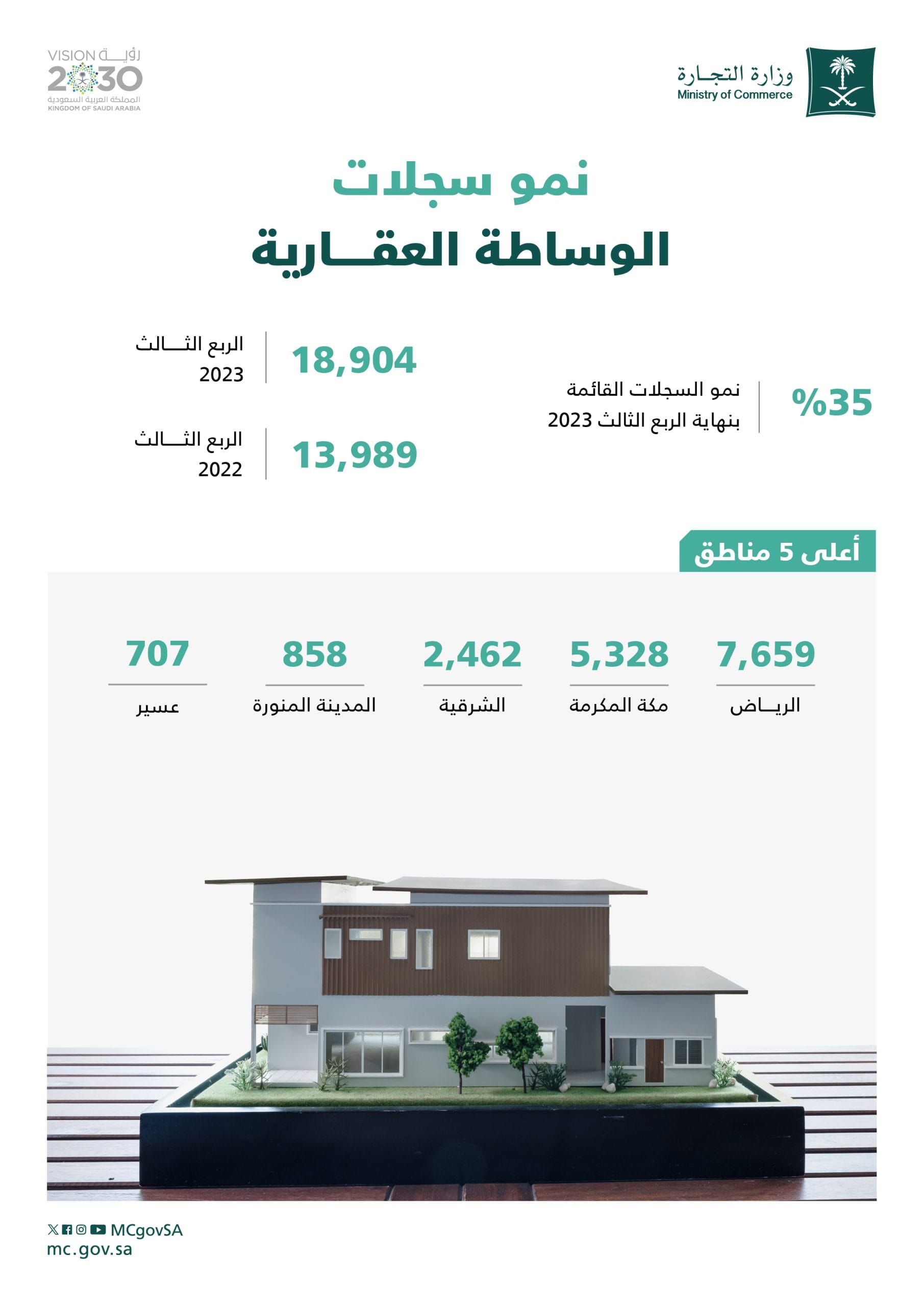 Revealed Ministry of Commerce، اليوم الأحد، عن 35% نموًا في سجلات الوساطة العقارية بنهاية الربع الثالث من العام الجاري 2023.