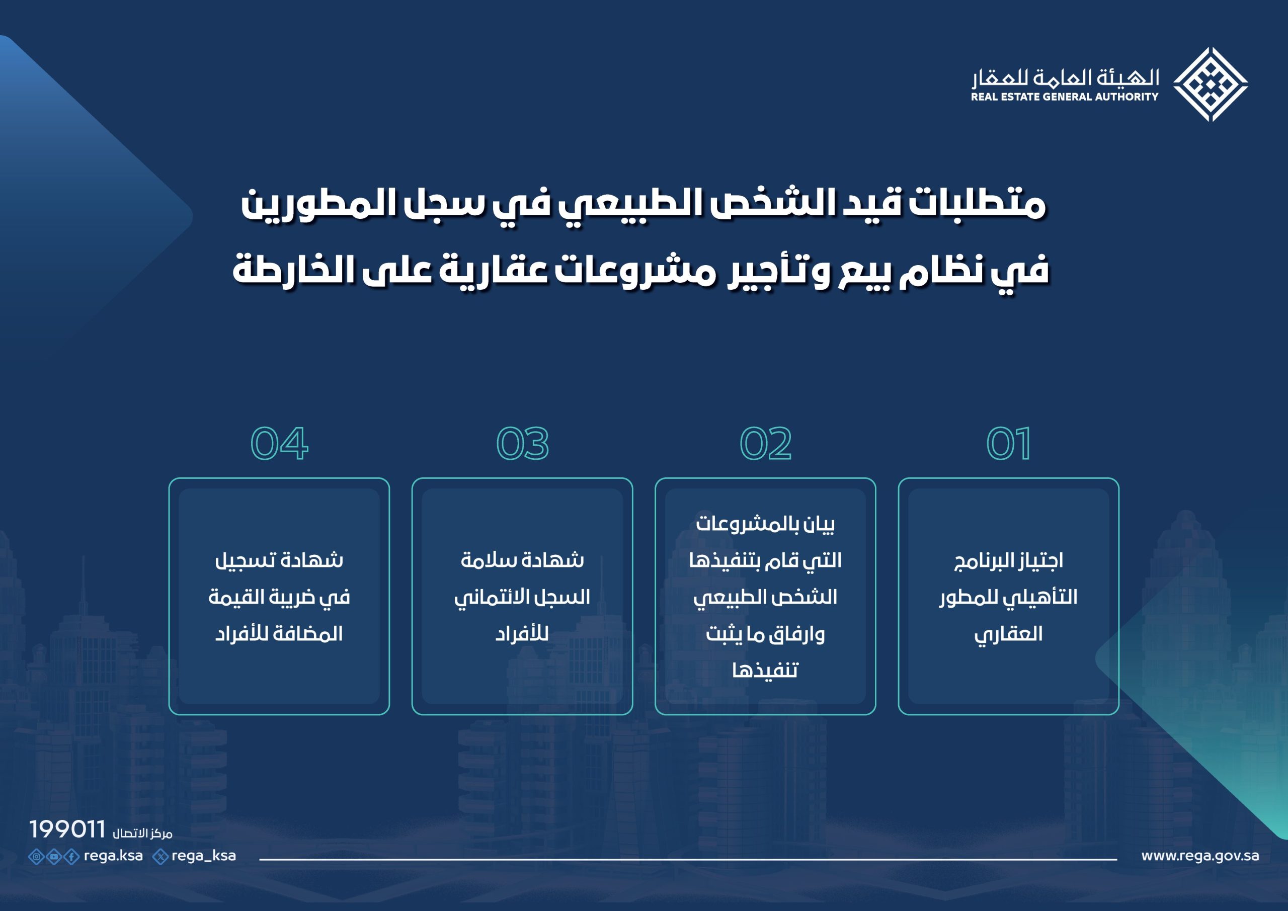 - اجتياز البرنامج التأهيلي للمطور العقاري.