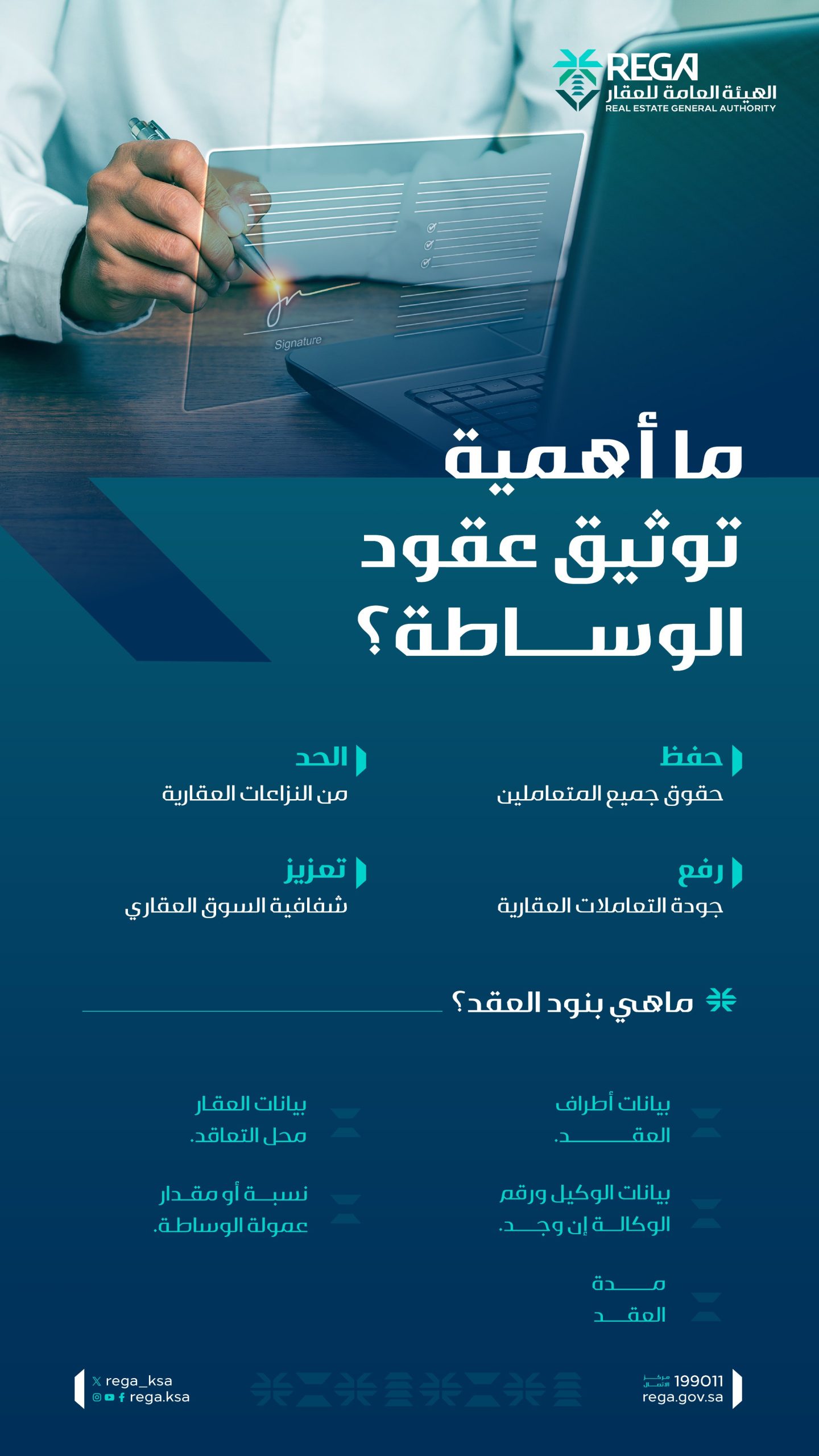 وقالت الهيئة إن عقود الوساطة العقارية بين المالك الوسيط العقاري، تساهم في حفظ حقوق جميع المتعاملين، ويحد من النزاعات العقارية، كما يساهم في رفع جودة التعاملات العقارية، ويعمل على تعزيز الشفافية في السوق العقاري.