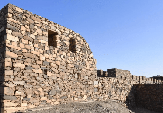 <The castle consists of a group of adjacent stone buildings distributed according to a geometric design that takes into account the topography of the mountain, and includes watchtowers and spacious courtyards that were used for training, as well as internal rooms with narrow windows for observation and defense. Its walls were constructed of local stones mixed with lime clay, giving it a high durability that enabled it to withstand for decades.Despite the damage done to the fortresses, the walls were built in a geometrically designed manner. Despite the effects of erosion and time, Sha'ar Castle still retains its historical splendor and architectural prestige, and is a destination for history lovers and those looking for archaeological sites in Asir.