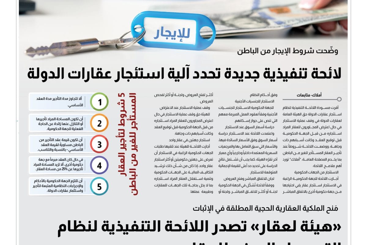 “أملاك” تنشر الملامح العامة للائحة التنفيذية الجديدة الخاصة بآلية استئجار عقارات الدولة
