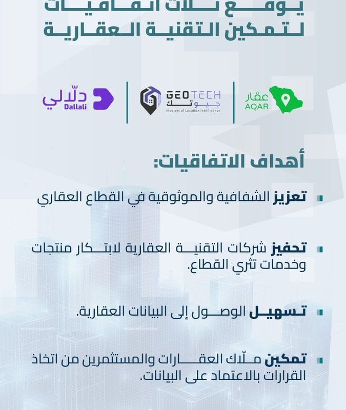 السجل العقاري يوقع 3 اتفاقيات في قمة البروبتك لتمكين شركات التقنية العقارية