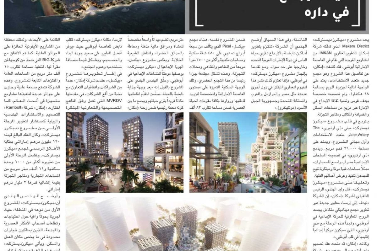عقارات ابوظبي إمكان للتطوير العقاري و «ميكرز ديستركت» حيث الإبداع في داره