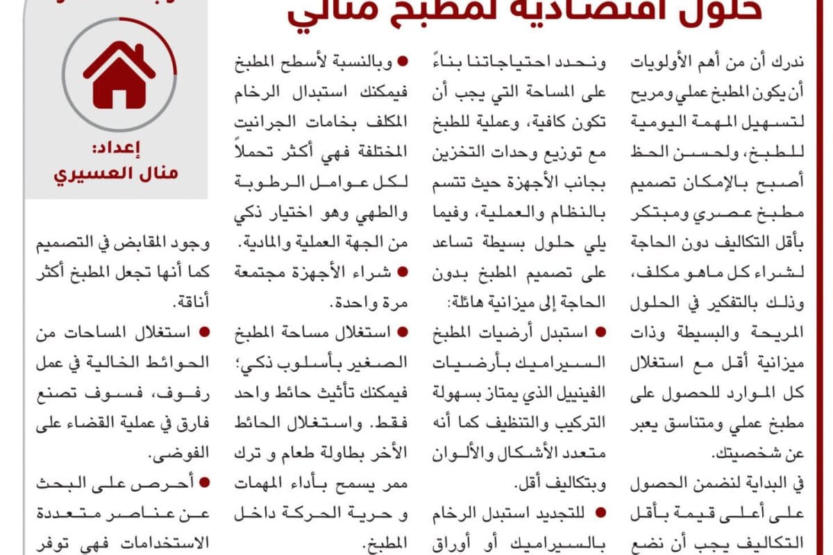 منال العسيري تكتب: حلول اقتصـادية لمطبخ مثالي