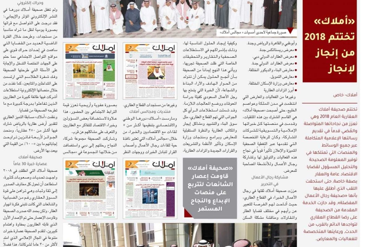 صحيفة رجال الأعمال المفضلة.. تختتم 2018.. «أملاك» قاومت إعصار الشائعات لتتربع على منصات الإبداع والنجاح المستمر