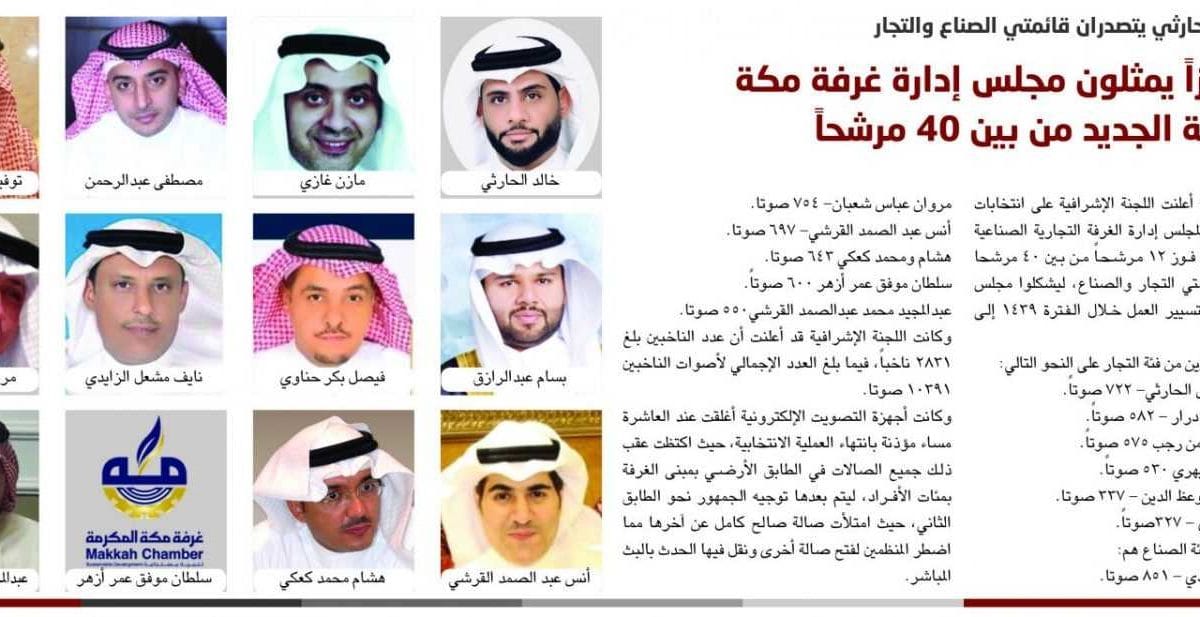 الزايدي والحارثي يتصدران قائمتي الصناع والتجار.. 12 فائزاً يمثلون مجلس إدارة غرفة مكة المكرمة الجديد من بين 40 مرشحاً