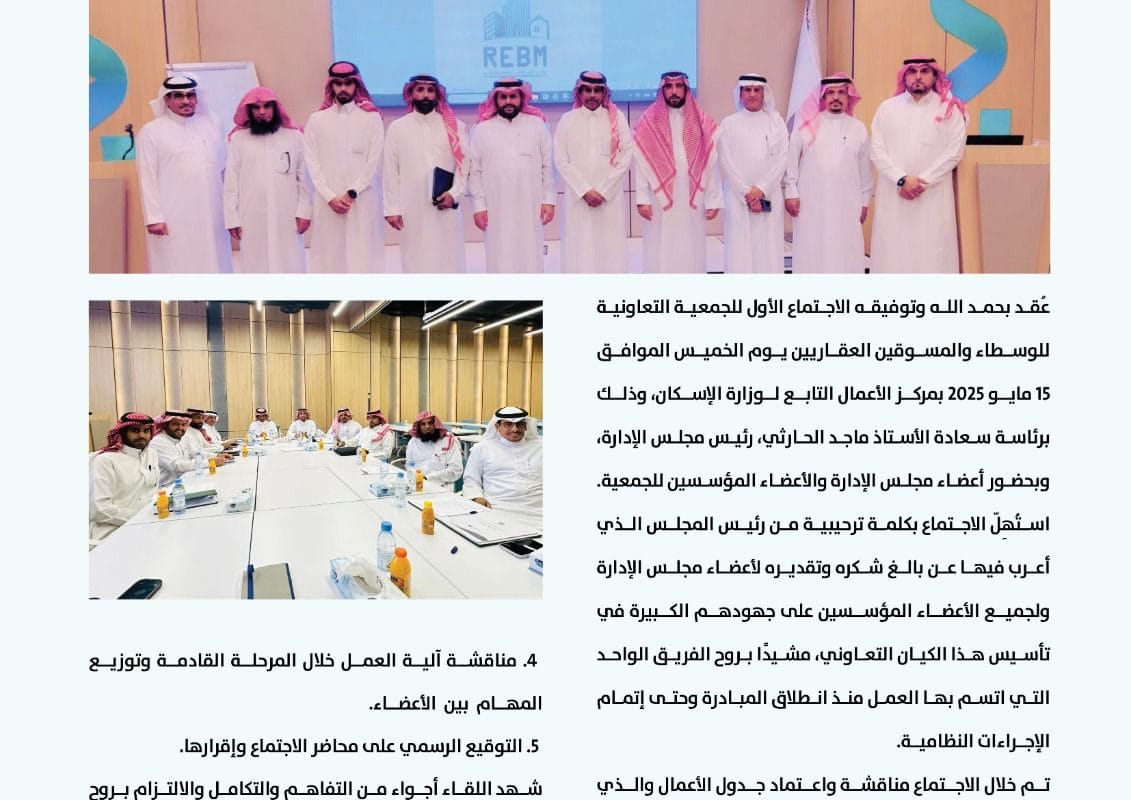 الجمعية التعاونية للوسطاء والمسوقين العقاريين تعتمد جدول أعمالها في اجتماعها الأول