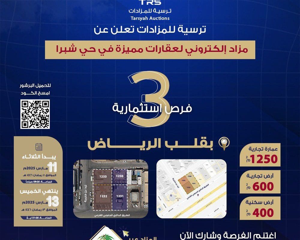 ترسية للمزادات تطلق مزاد أراضي شبرا بالرياض بثلاث فرص استثمارية مميزة