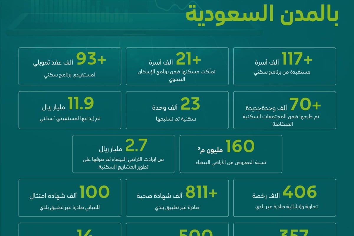 طرح 70 ألف وحدة جديدة وتسليم 23 ألفاً، إصدار 406 ألف رخصة ومعالجة 1.2 مليون بلاغ.
