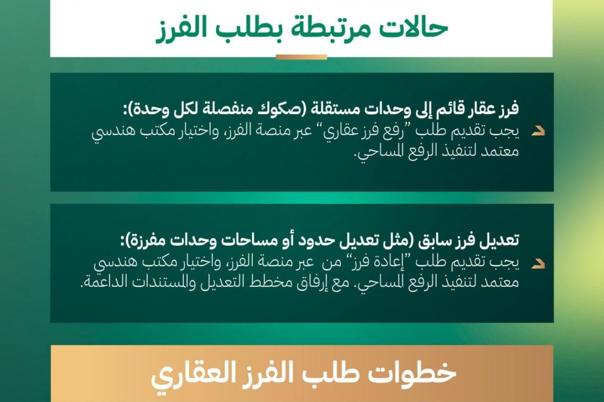 الهيئة العامة للعقار توضح عبر منصة "عقاري" حالات طلب الفرز وإعادة الفرز العقاري وخطوات التقديم والمتابعة إلكترونيًا
