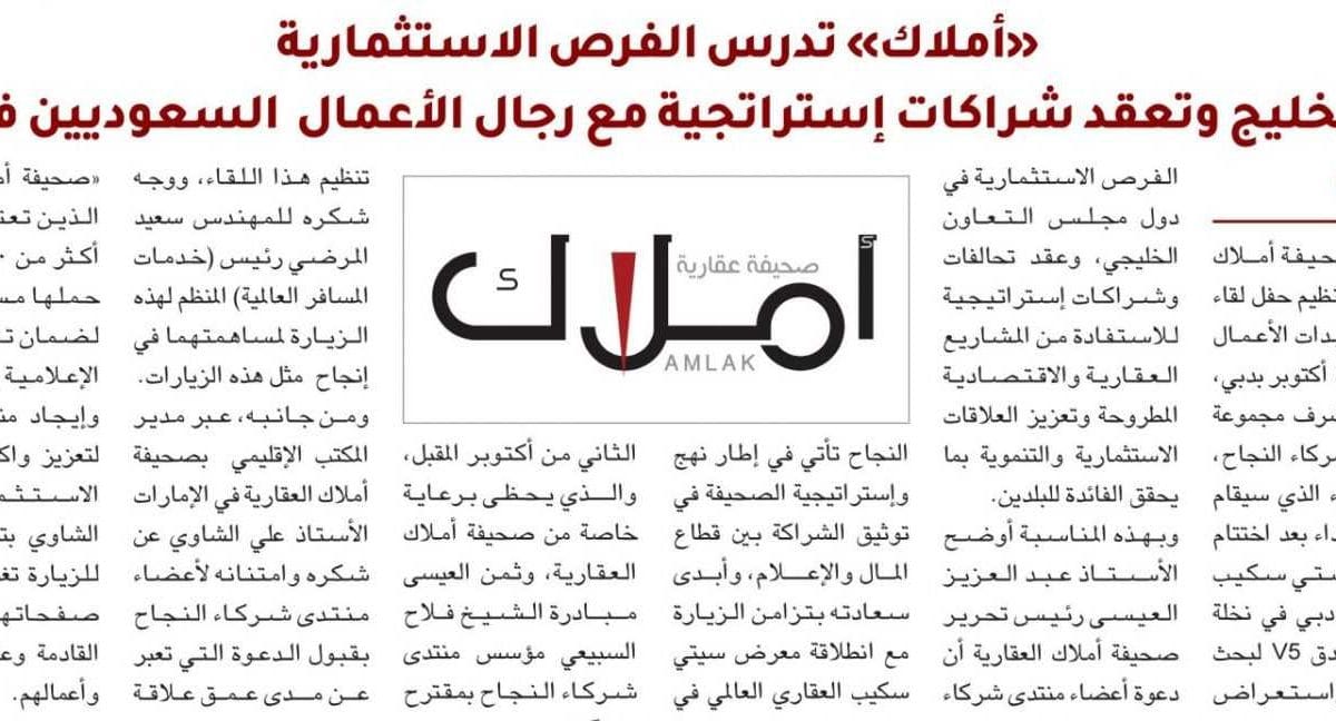«أملاك» تدرس الفرص الاستثمارية في الخليج وتعقد شراكات إستراتجية مع رجال الأعمال السعوديين في دبي