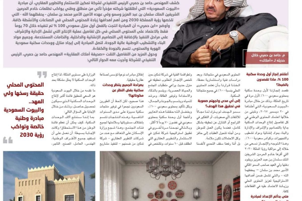 مهندس حامد بن حمري الرئيس التنفيذي لشركة تمكين للاستثمار والتطوير العقاري: أنتجنا أول منزل سعودي 100 % وهدفنا الوصول إلى المليون