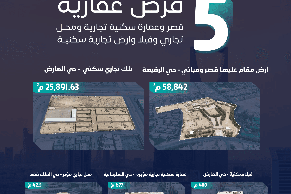 طرح 5 فرص عقارية في مزاد قيم