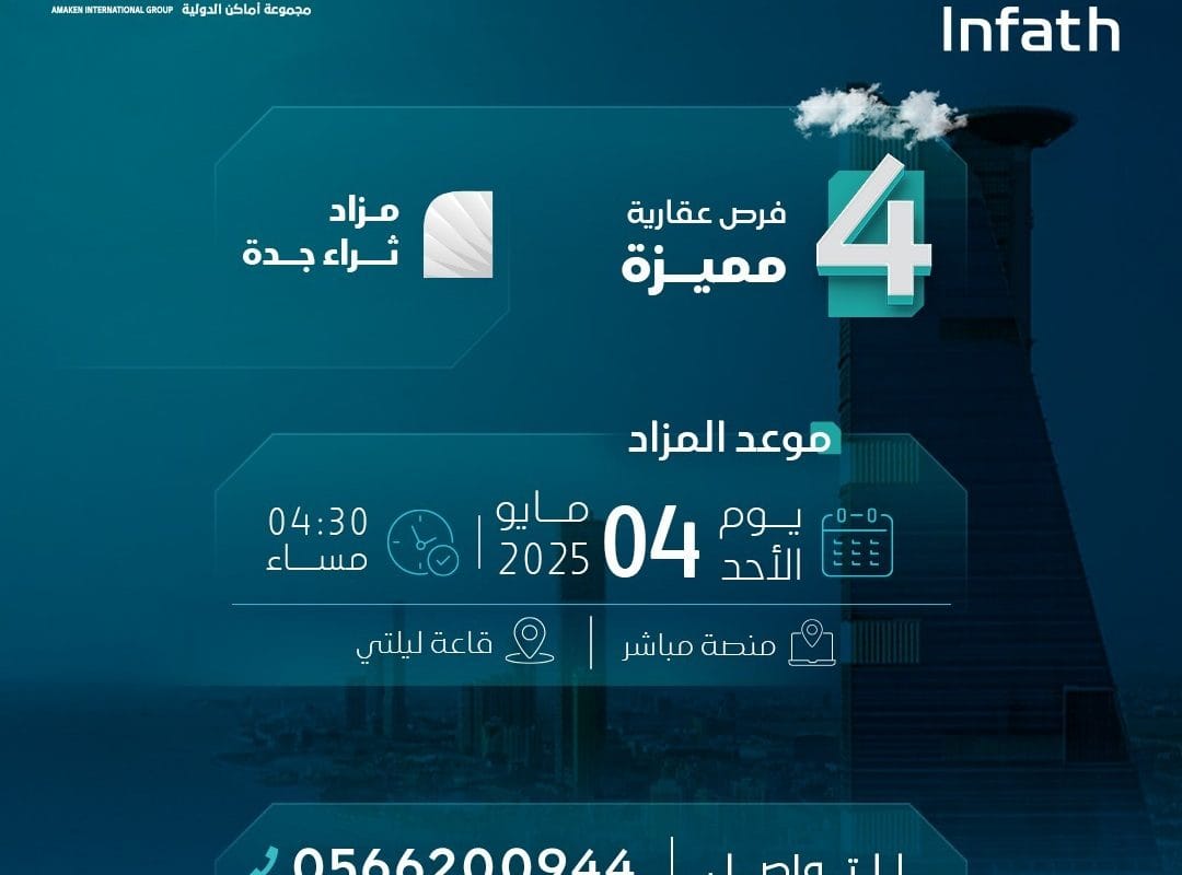 جدة تحتضن مزاد “ثراء جدة” العقاري لطرح 4 فرص نوعيّة في مواقع حيوية