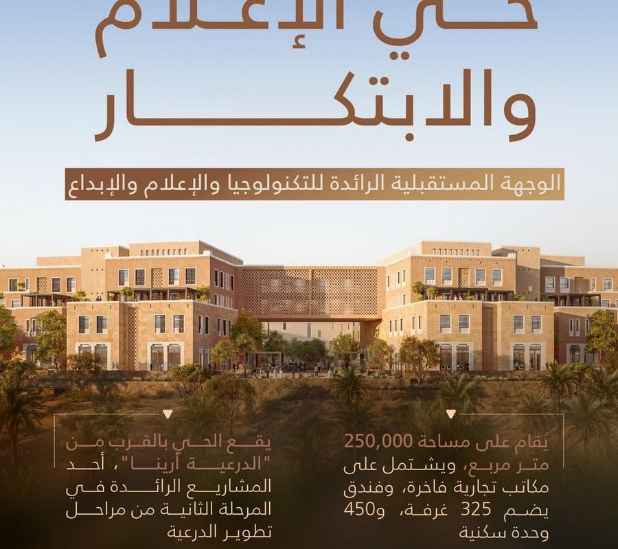 شركة الدرعية تُعلن عن “حي الإعلام والابتكار” بسعة 450 وحدة سكنية