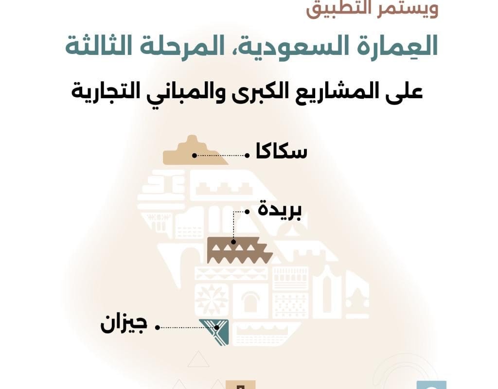 بدء تنفيذ المرحلة الثالثة للموجهات التصميمية للعمارة السعودية في جيزان وسكاكا وبريدة لتعزيز الهوية العمرانية.