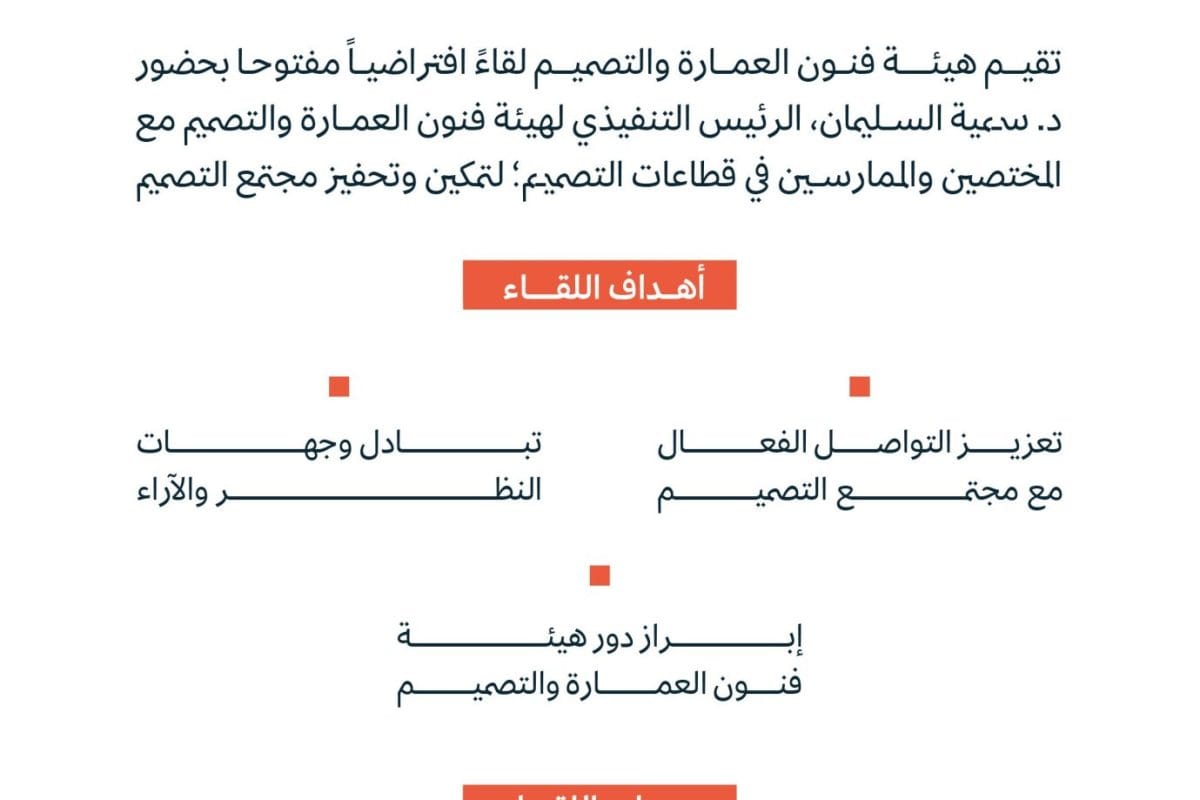 هيئة فنون العمارة تستعرض مستقبل التصميم في لقاء افتراضي