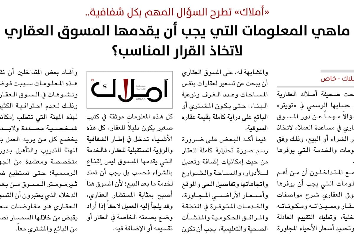 «أملاك» تطرح السؤال.. ماهي المعلومات التي يجب أن يقدمها المسوق العقاري لاتخاذ القرار المناسب؟